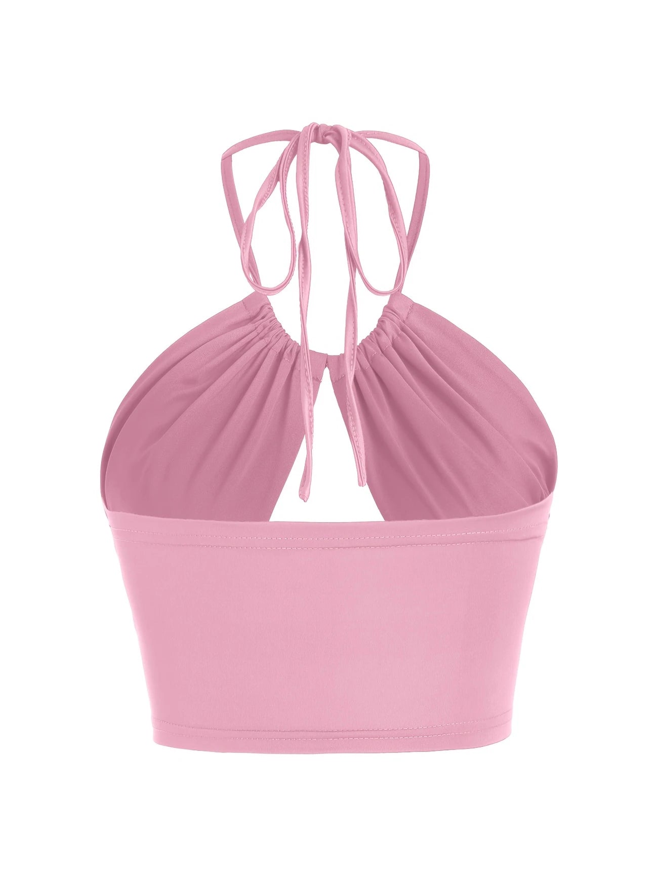 Multiple ways to wear: backless, tricot, hollow, cross, strappy, solid color, lace-up, tube top, versatile crop top, front strap tube top, backless, showing the elegance of women.