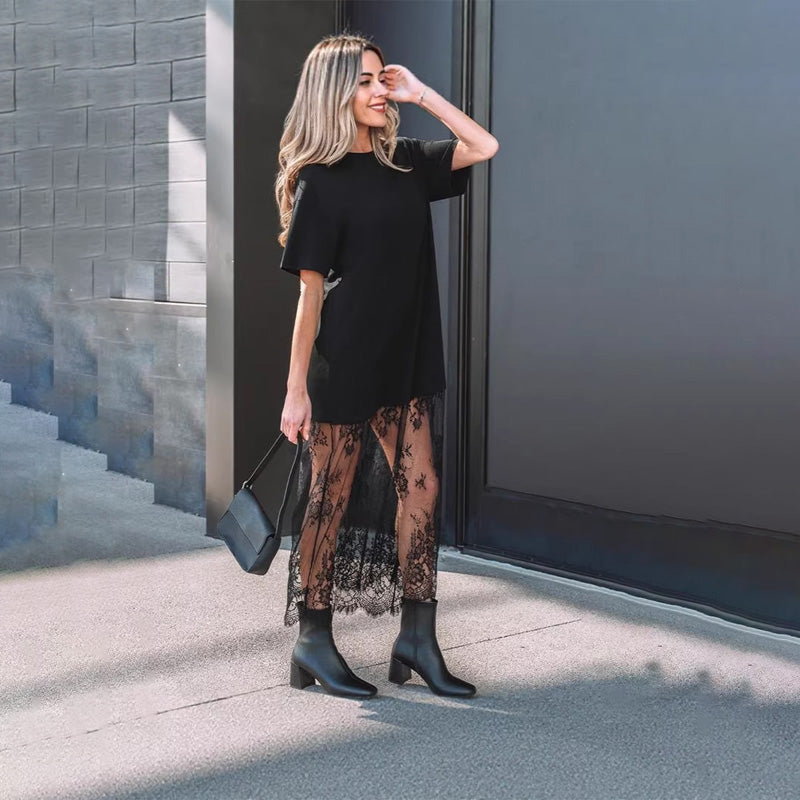 Lace-trimmed faux two-piece dress
