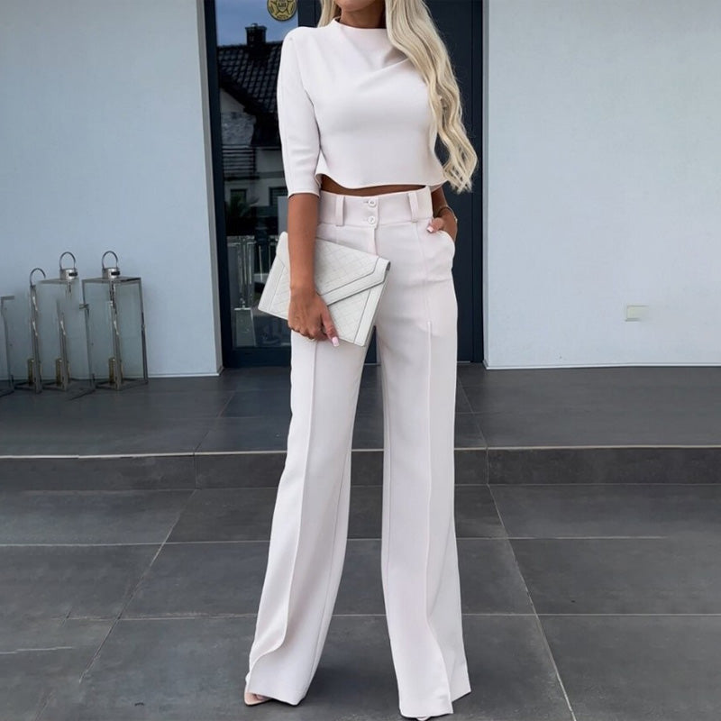Solid color high-waisted flared pants