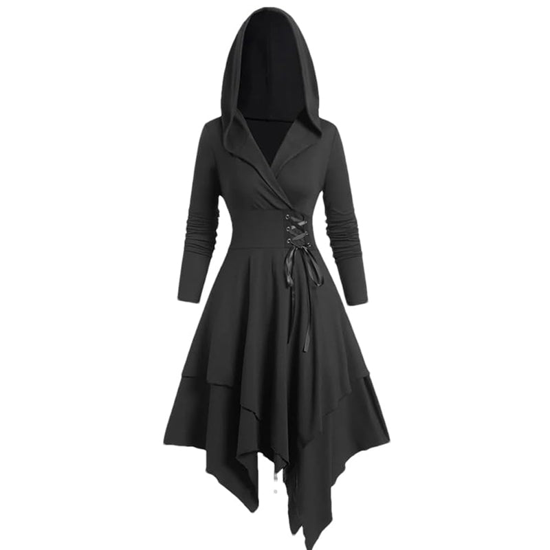 Tie-up hooded asymmetrical dress