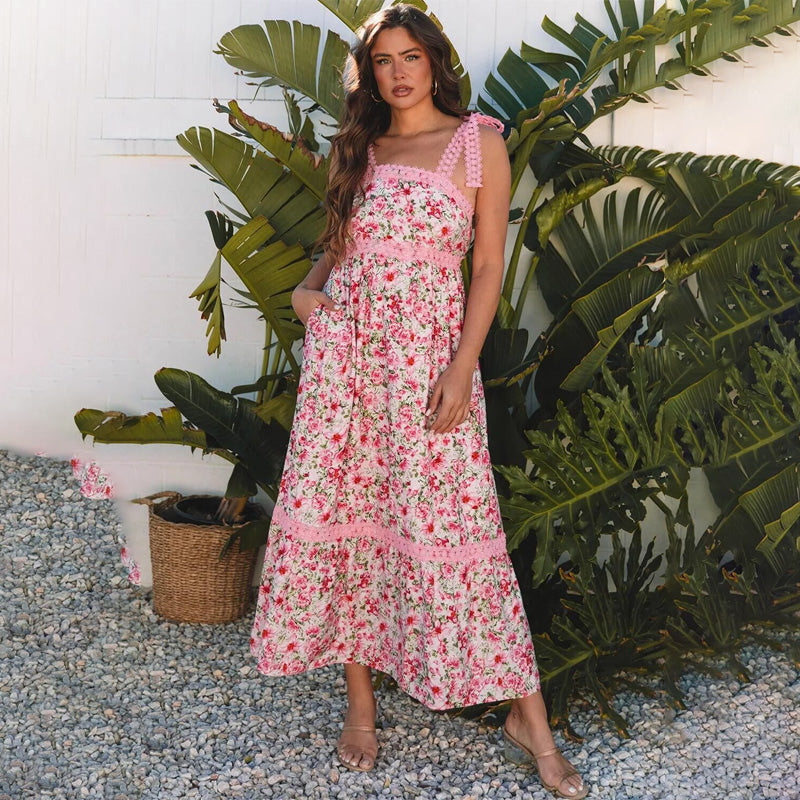Pink floral lace maxi dress