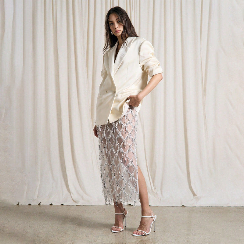 Tassel Sequin Midi Skirt
