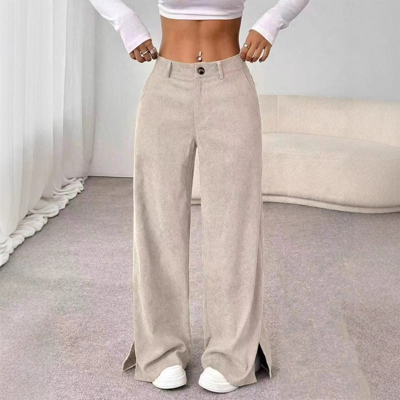 Soft Corduroy Slit Wide-Leg Pants