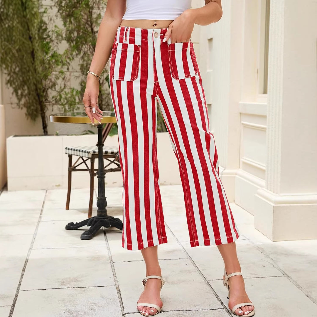 Striped Print Fashion Casual Jeans