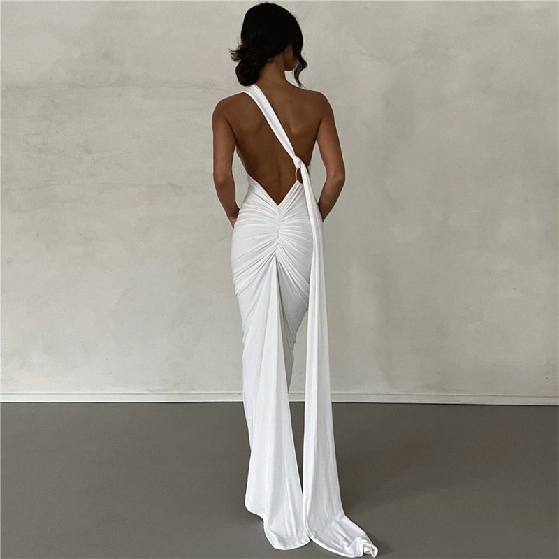 Transform your look with our Slant Shoulder Backless Hollow Out Dress. This stylish and chic dress features a unique design that combines a slant shoulder, backless style, and hollow out details. Show off your elegant and confident side with this one-of-a-kind dress.