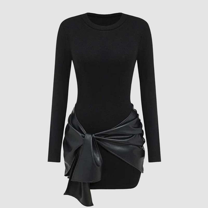 🔥 Sexy and Stylish - Leather Panel Long-Sleeved Fitted Dress 🔥